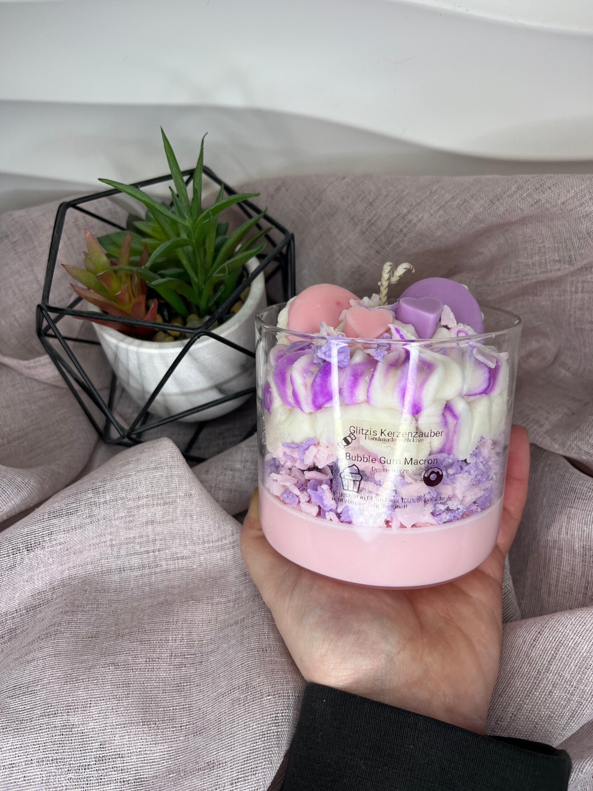 VERSCHÖNERE DEIN ZUHAUSE MIT EINER VON HAND GEGOSSENEN DUFTKERZE, DIE DEINEM LIEBLINGSSÜẞIGKEIT ÄHNLICH SIEHT. ERLEBE DIE BERUHIGENDE FRISCHE VON BUBBLEGUM – PERFEKT FÜR EINE ENTSPANNTE ATMOSPHÄRE. DAS KERZENGLAS KANNST DU NACH DEM ABBRENNEN GANZ EINFACH AUSSPÜLEN UND ALS GETRÄNKE-GLAS WIEDER VERWERTEN.