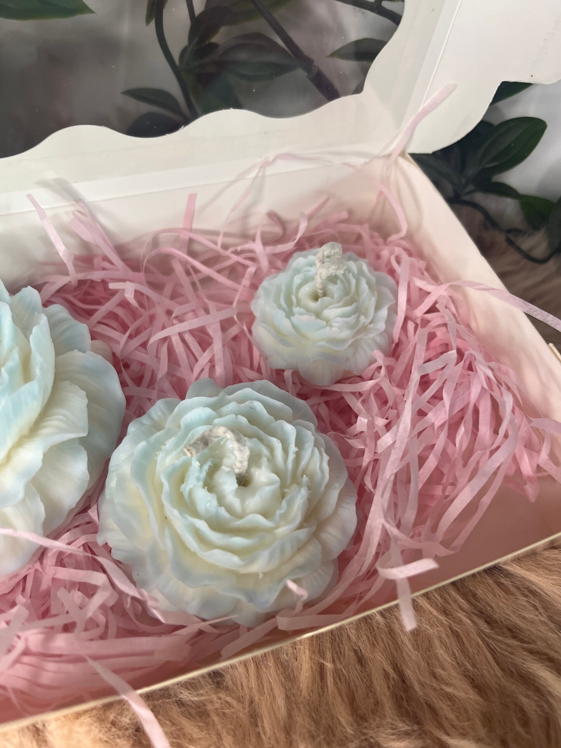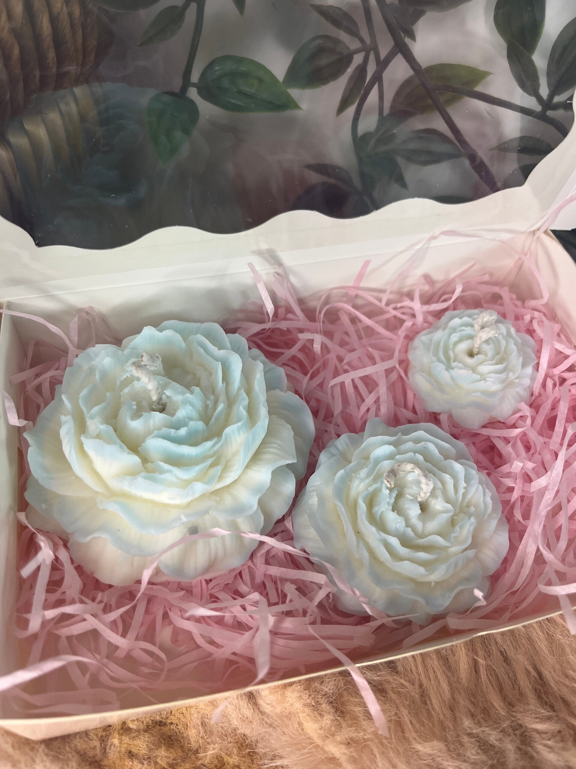 Wunderschönes Set aus 3 Pfingstrosenkerzen. L,M und S. Ohne Duft sehr edel und hübsch ❤️♥️