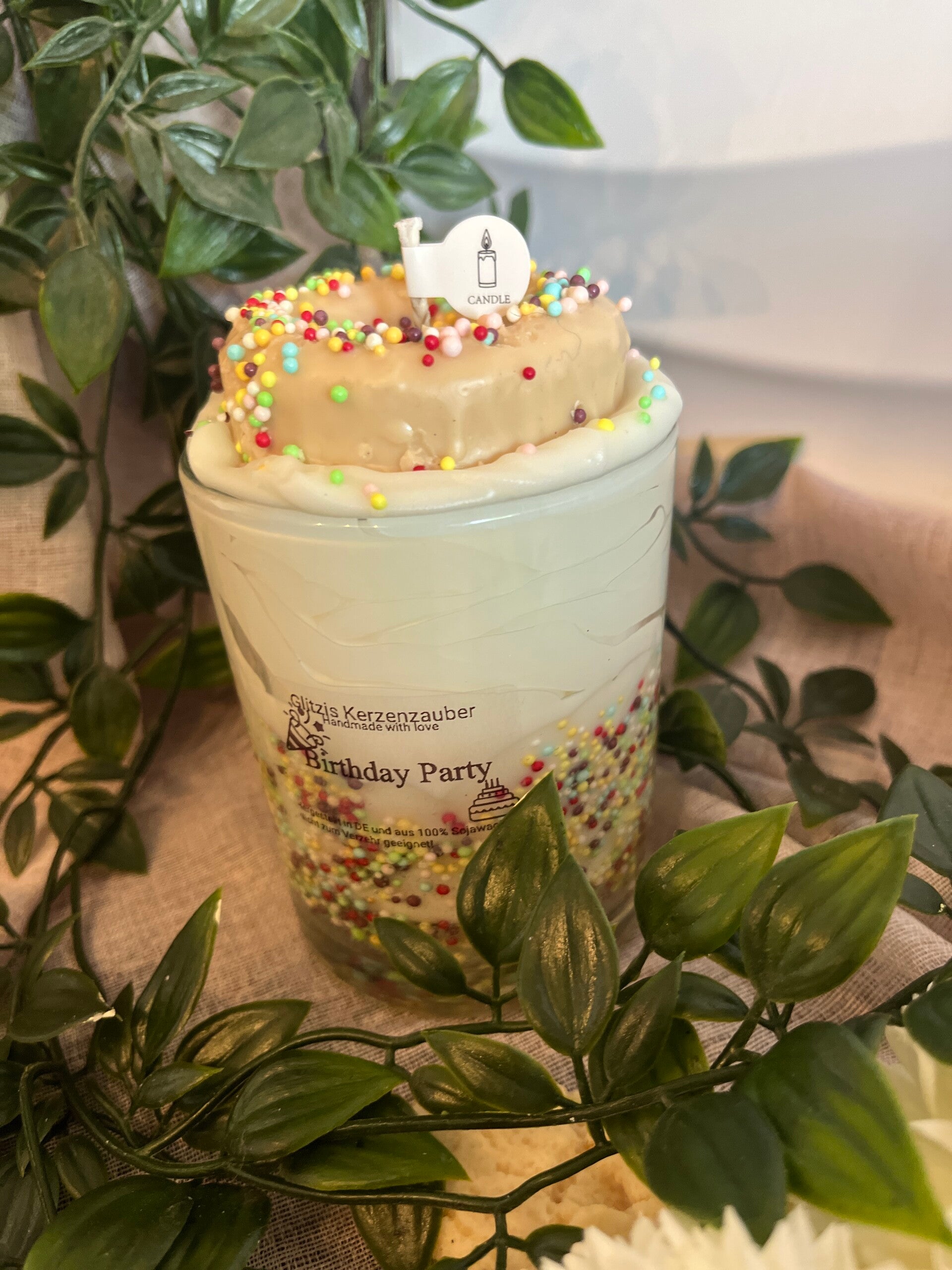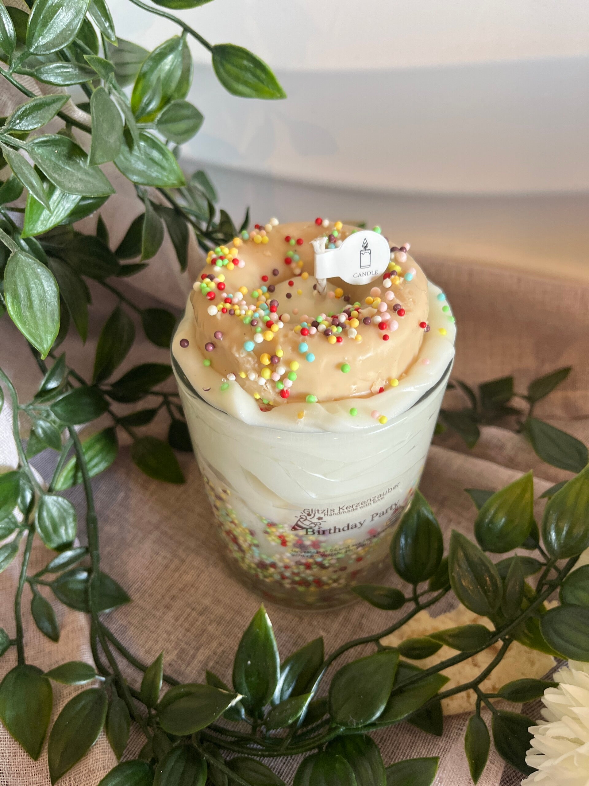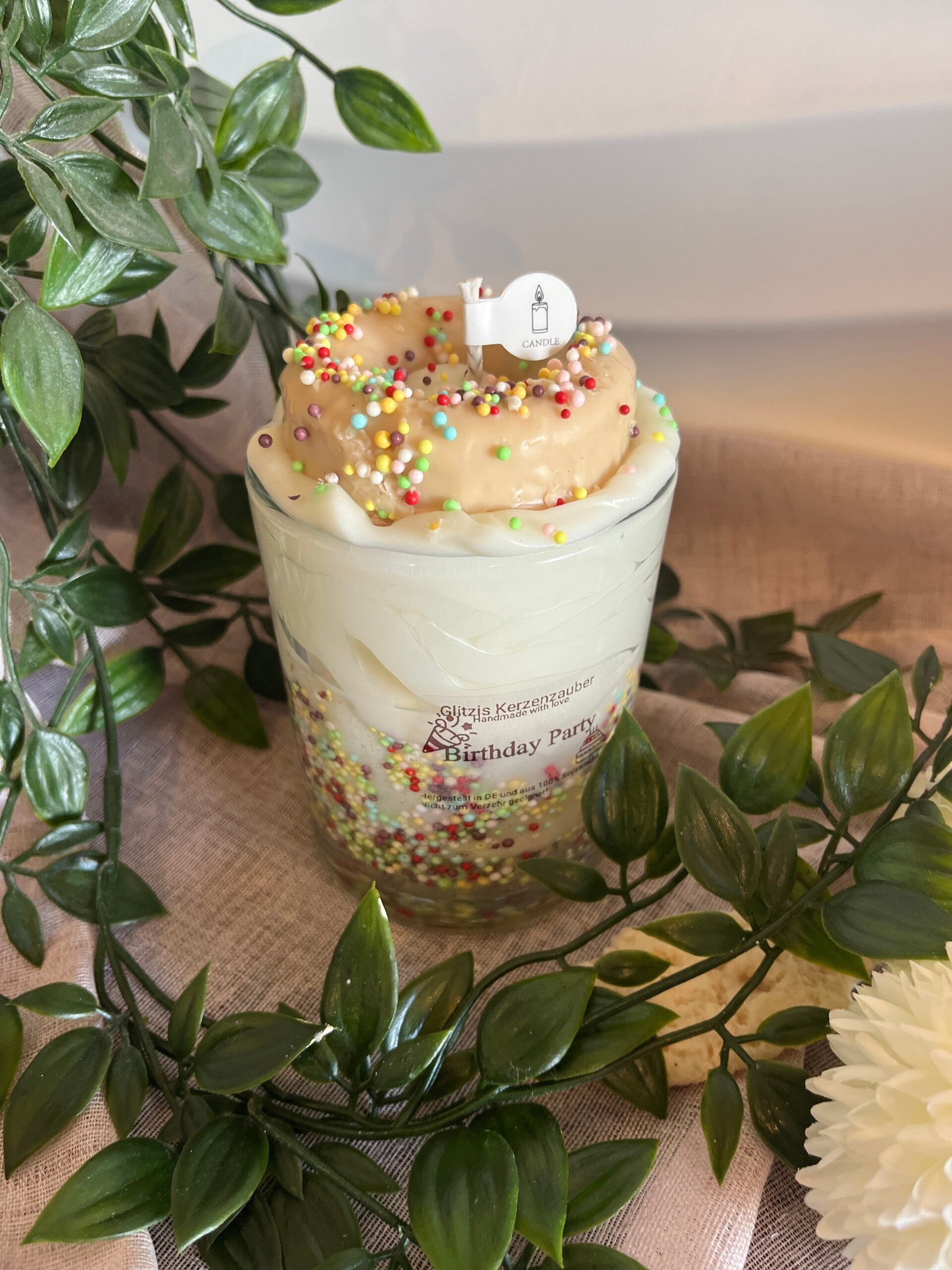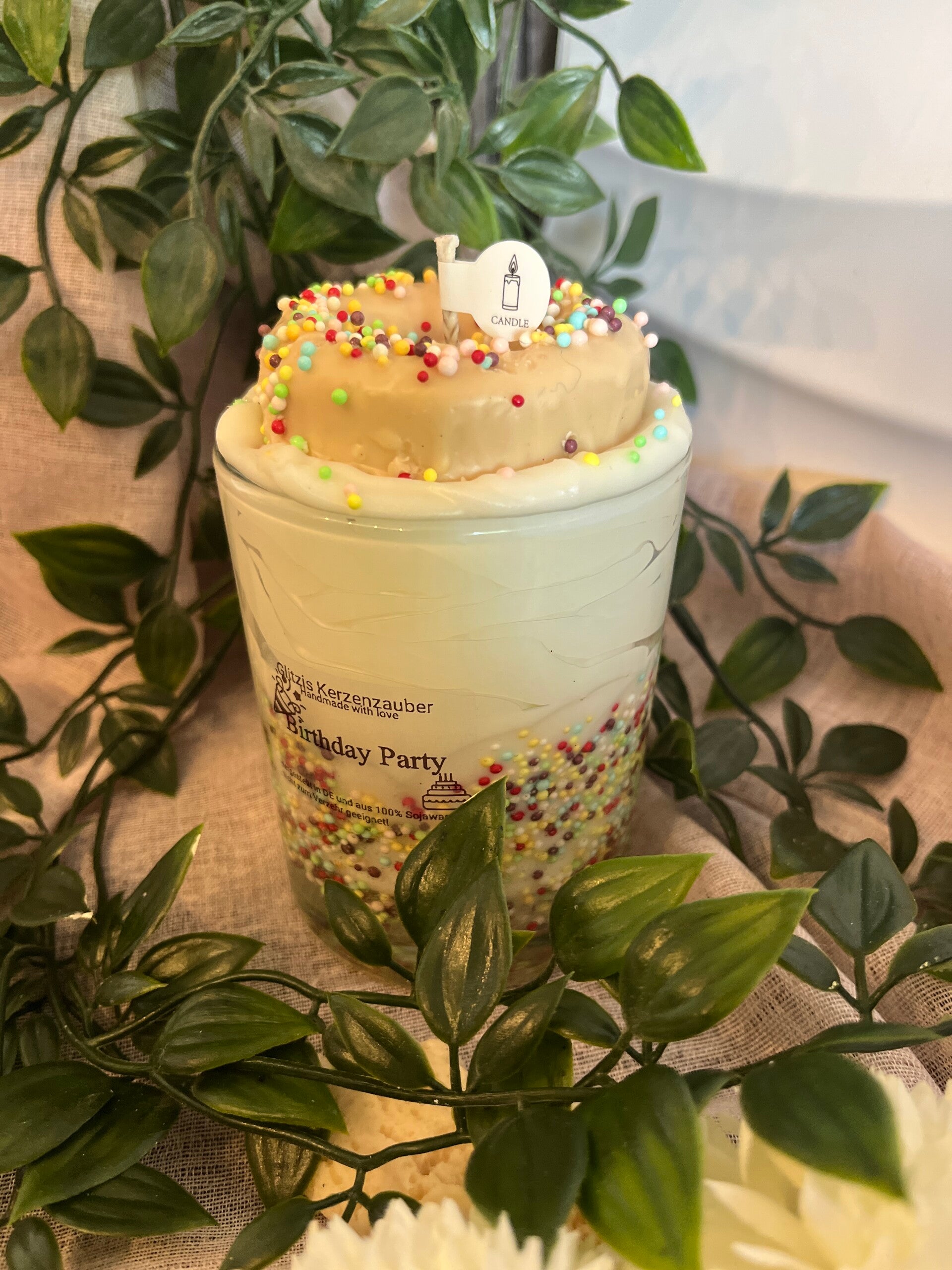 Birthday Party ist eine verspielte und tolle Kerze zum selbstbeschenken oder verschenken! Der Hingucker als besonders Geschenk. Die Kerze ist ohne Duft und sowohl mit Sojawachs als auch mit Gelwachs gearbeitet.