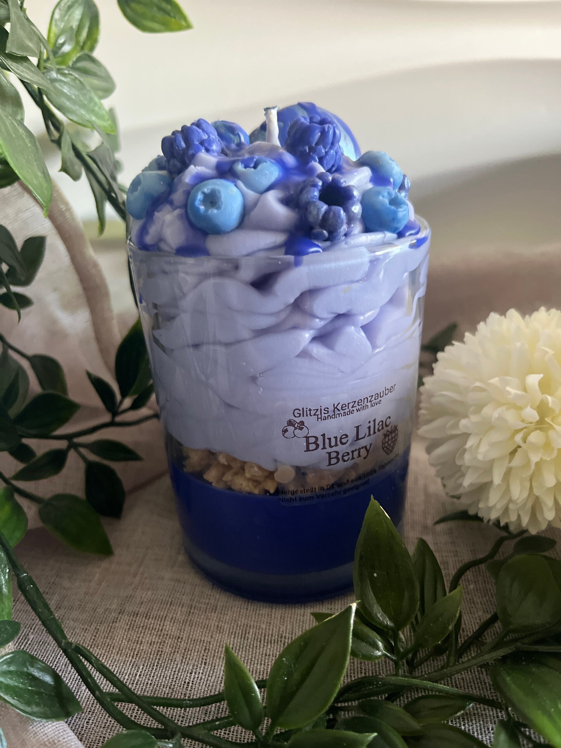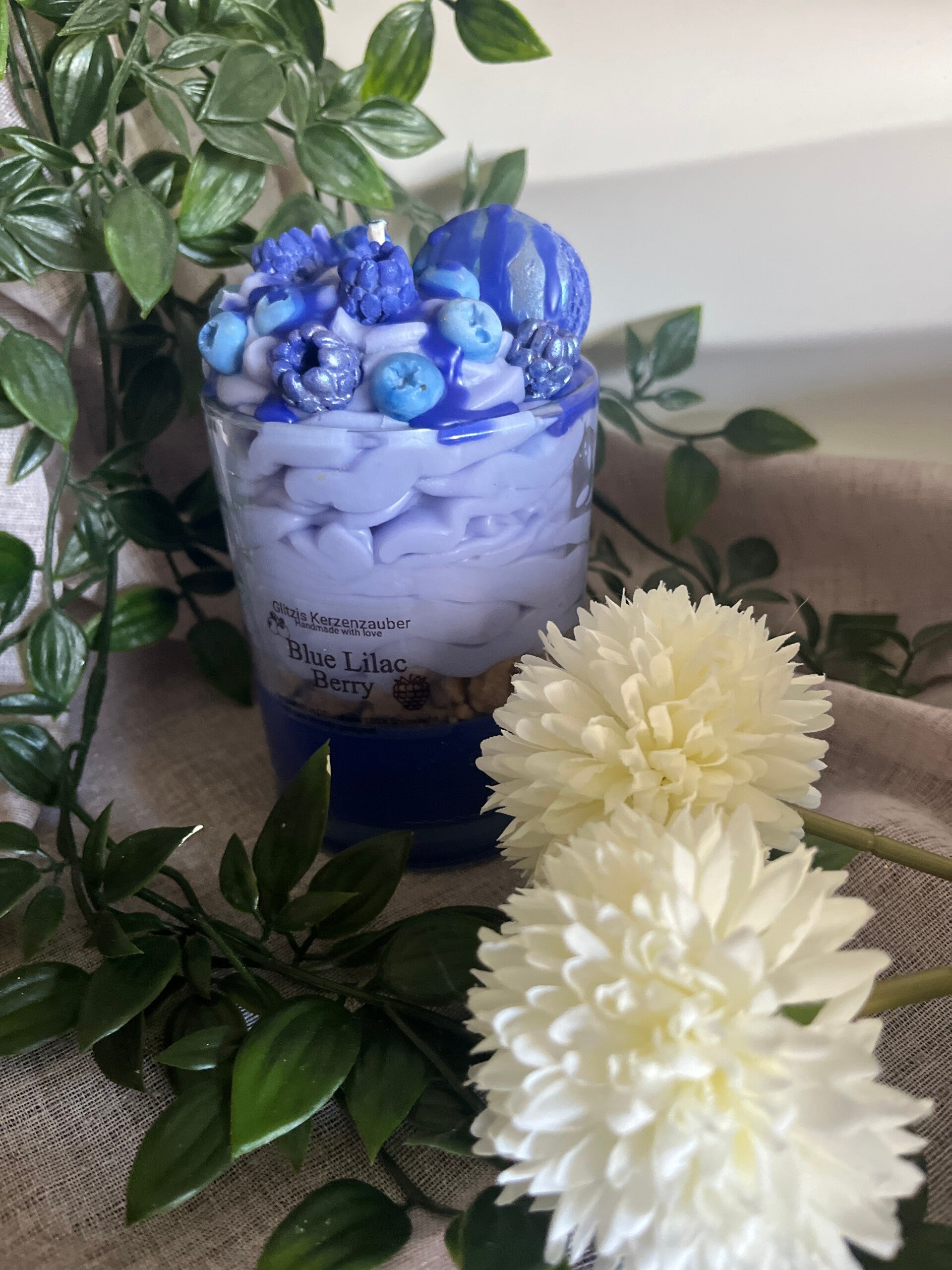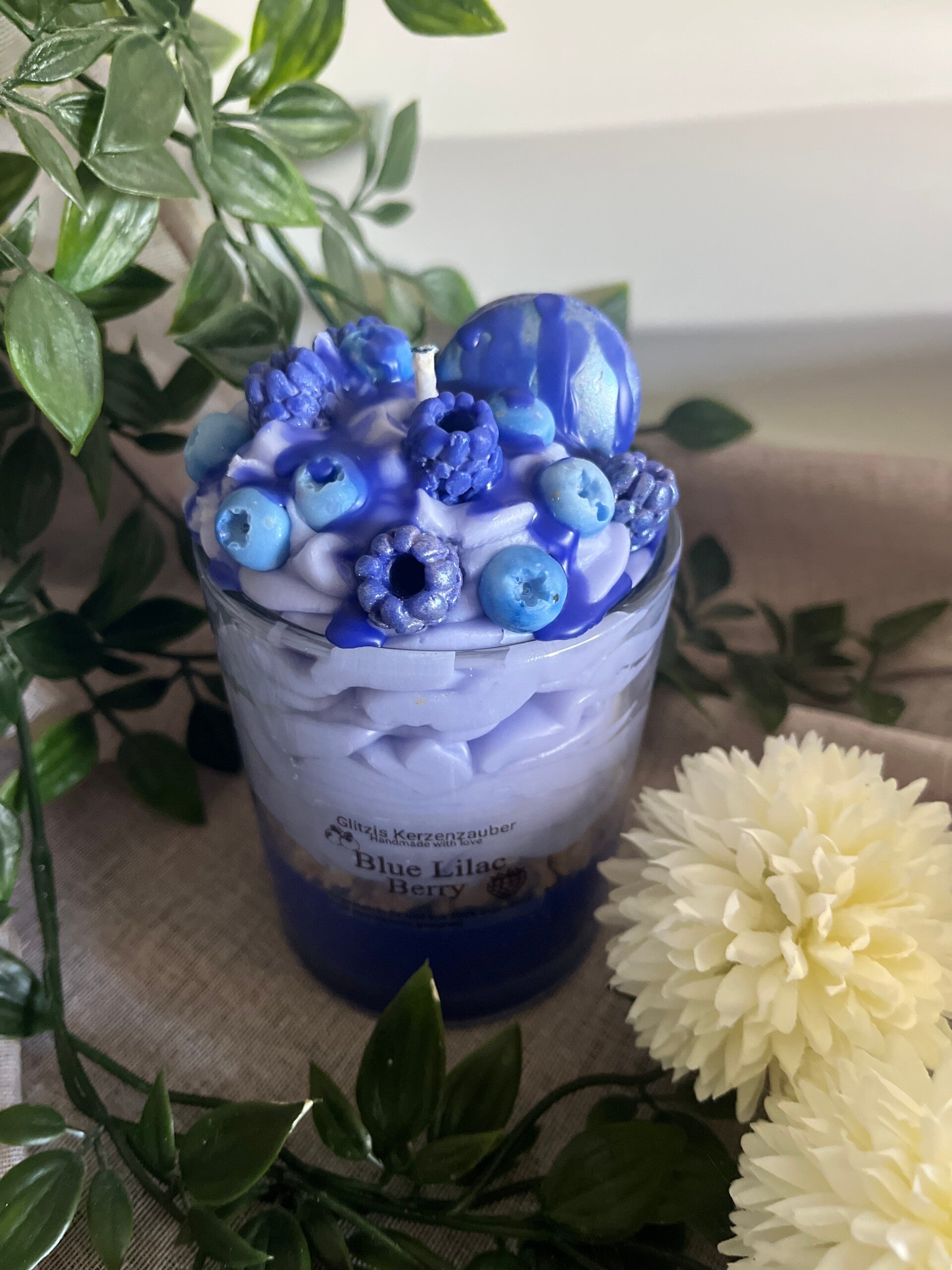 Blue Lilac Berry ist eine verspielte Desserkerze. Sie wurde ohne ein ätherisches Öl von mir angefertigt.