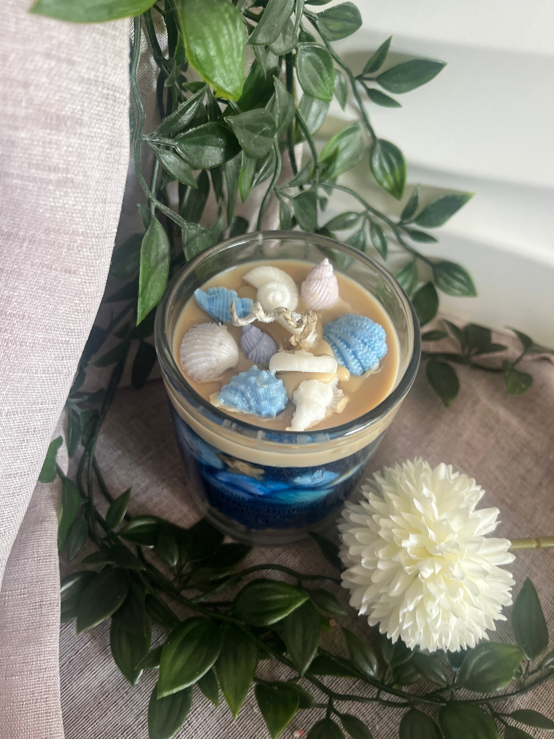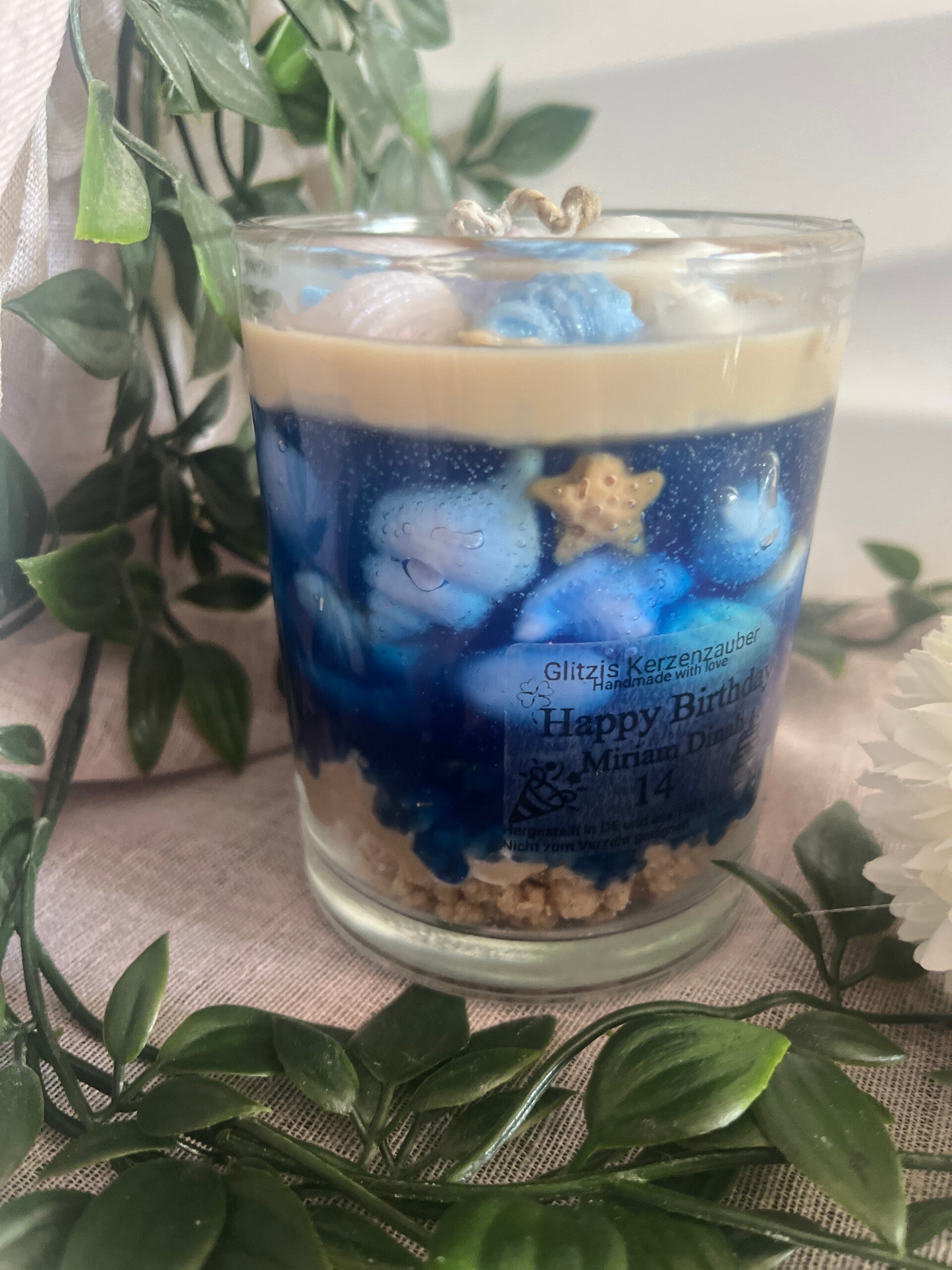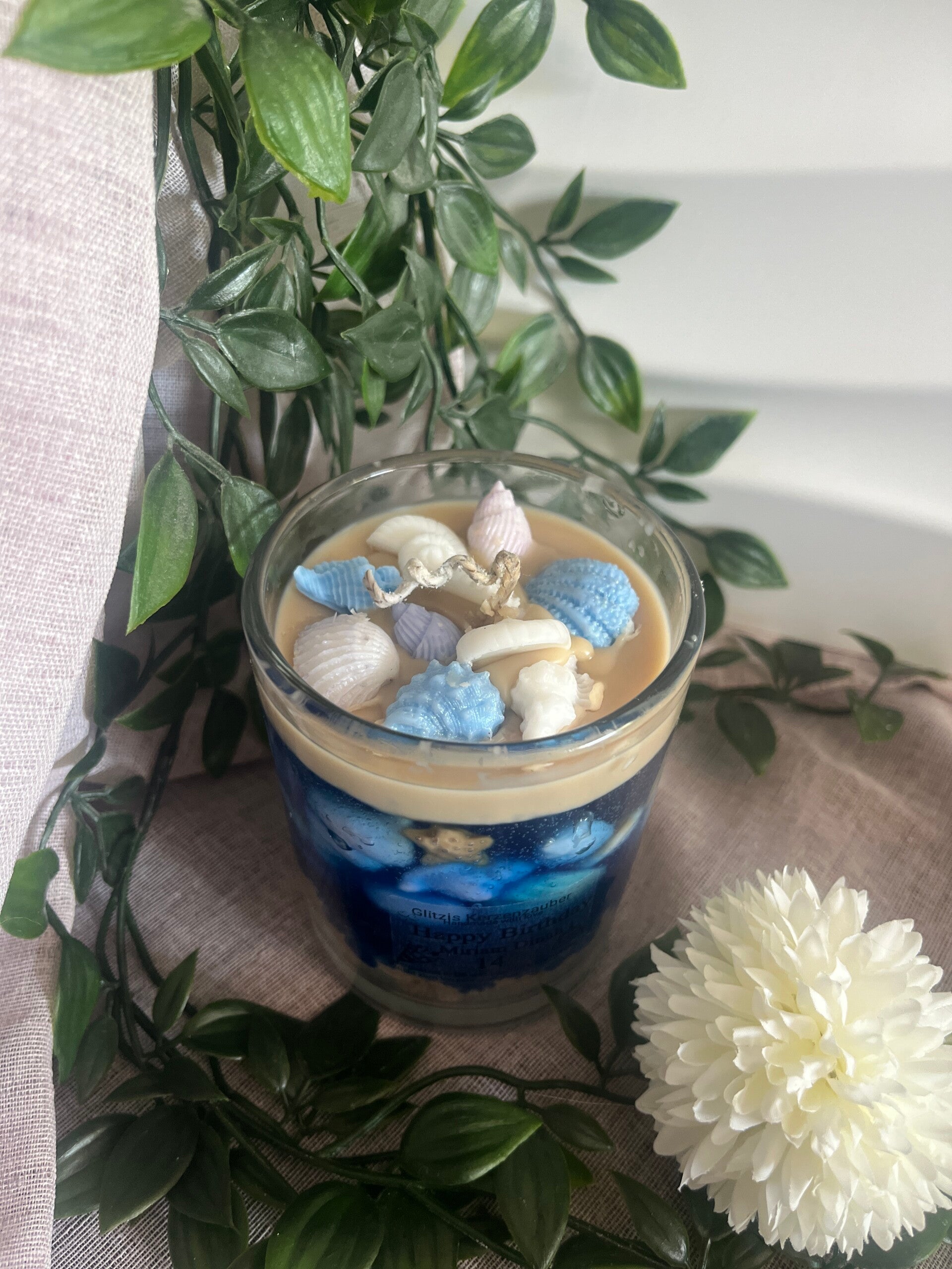 Wunderschöne Urlaubskerze aus reinem Sojawachs und Gel Wachs.