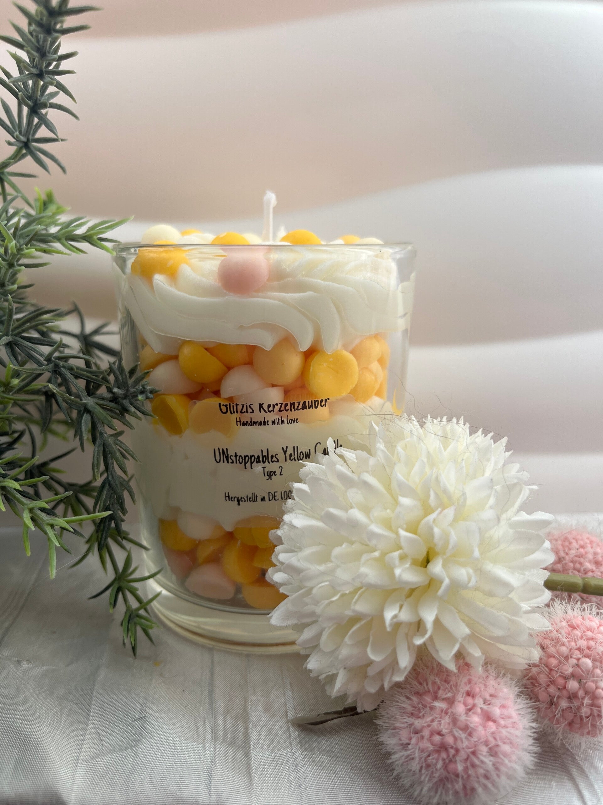 Meine Kerzen bestehen aus reinem, natürlichem Wachs und sorgen für ein sauberes, nachhaltiges Abbrennen ohne schädliche Chemikalien.