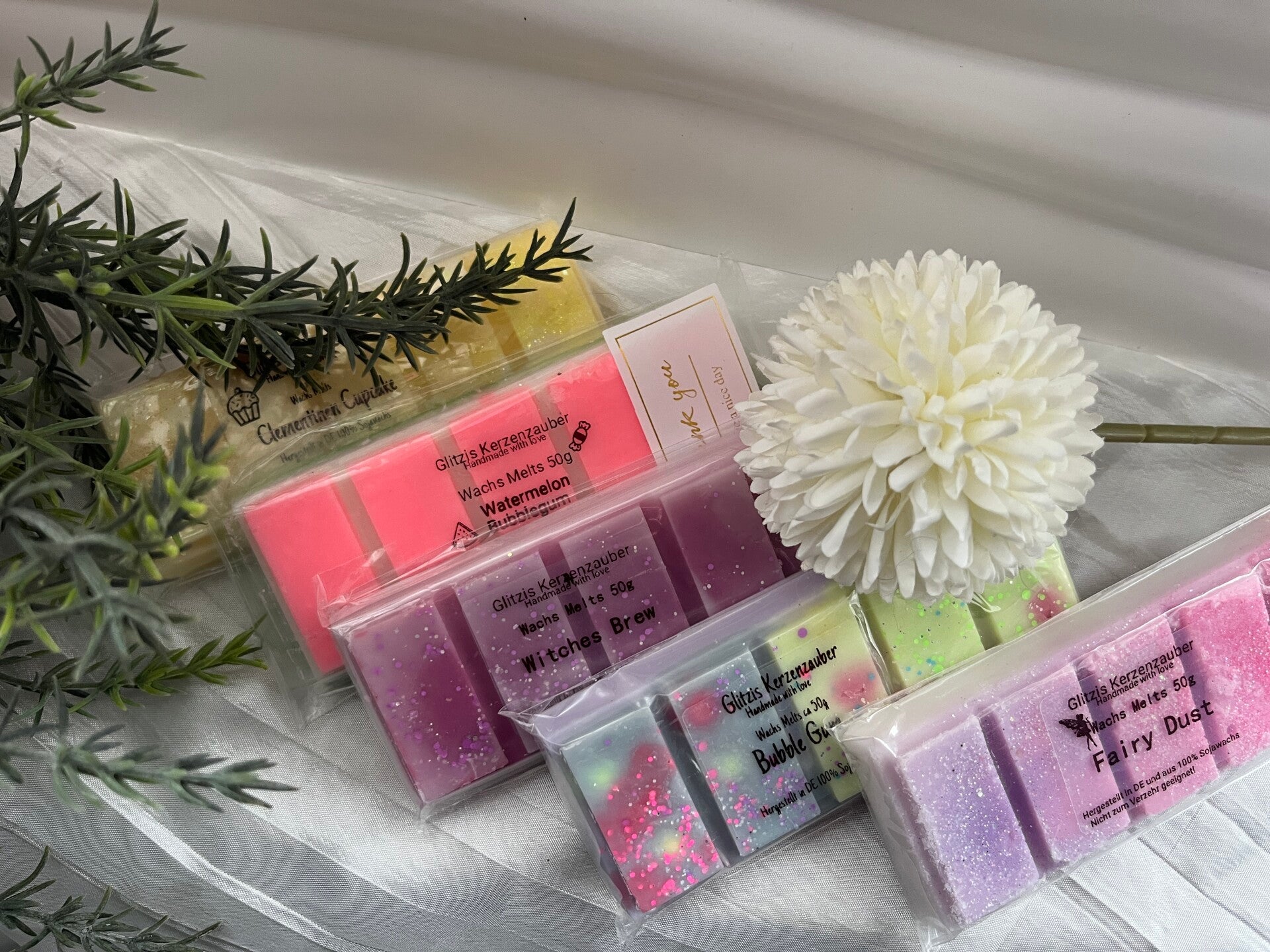 Du liebst besondere Düfte, die gute Laune machen und dein Zuhause in eine Wohlfühloase verwandeln? Dann ist dieses Paket genau das Richtige für dich! Ich habe meine fünf persönlichen Lieblingsdüfte als Wachs Melts für dich zusammengestellt – handgegossen, mit Liebe verpackt und perfekt zum Verschenken oder selbst Genießen.
