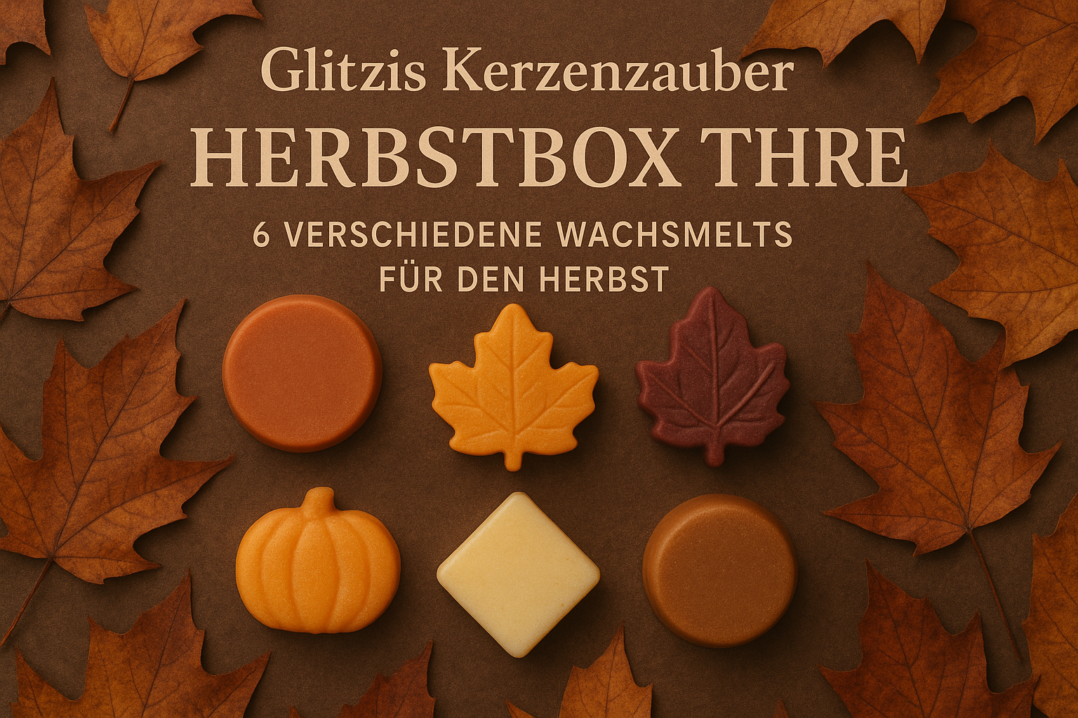 Unsere Herbstbox enthält 6 verschiedene Wachs Melts in herbstlichen Düften und Formen – perfekt, um dein Zuhause in eine warme Wohlfühloase zu verwandeln.
