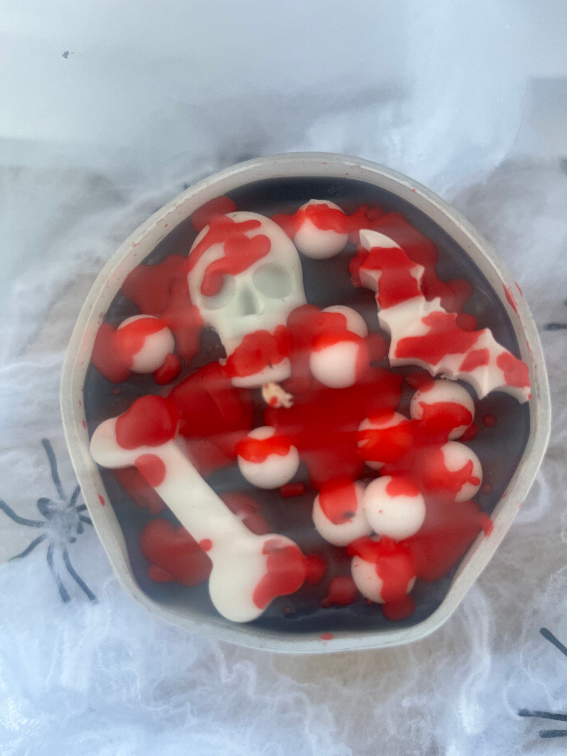 - Detailreich dekoriert: Mit kleinen Knochen, Schädeln und blutigen Effekten für das perfekte Horror-Ambiente.