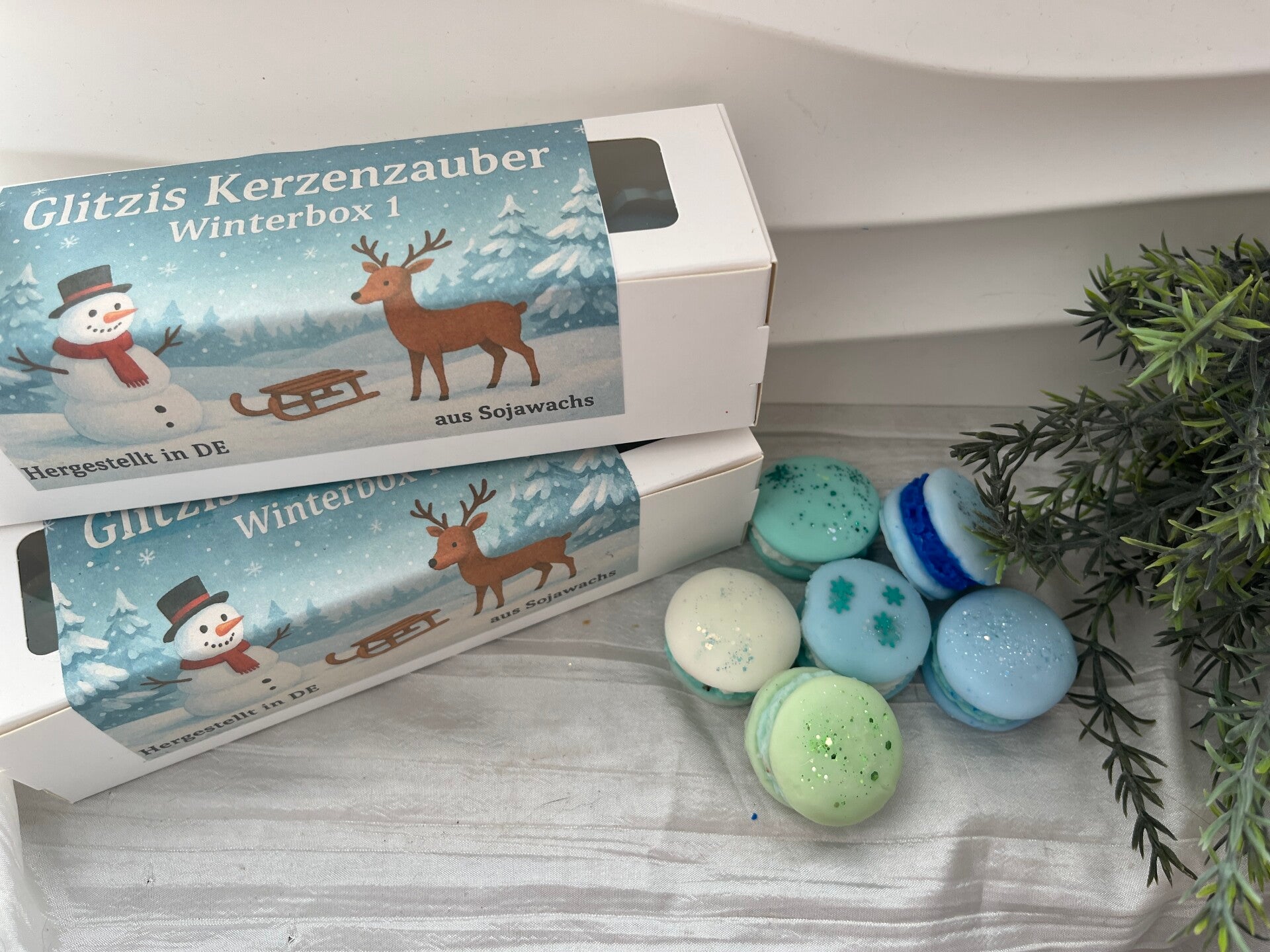 Hier findest du eine Winterbox 1 mit 6 verschiedenen Macaron Wachs Melts. 6 verschiedene Düfte mit den du dich verzaubern kannst.