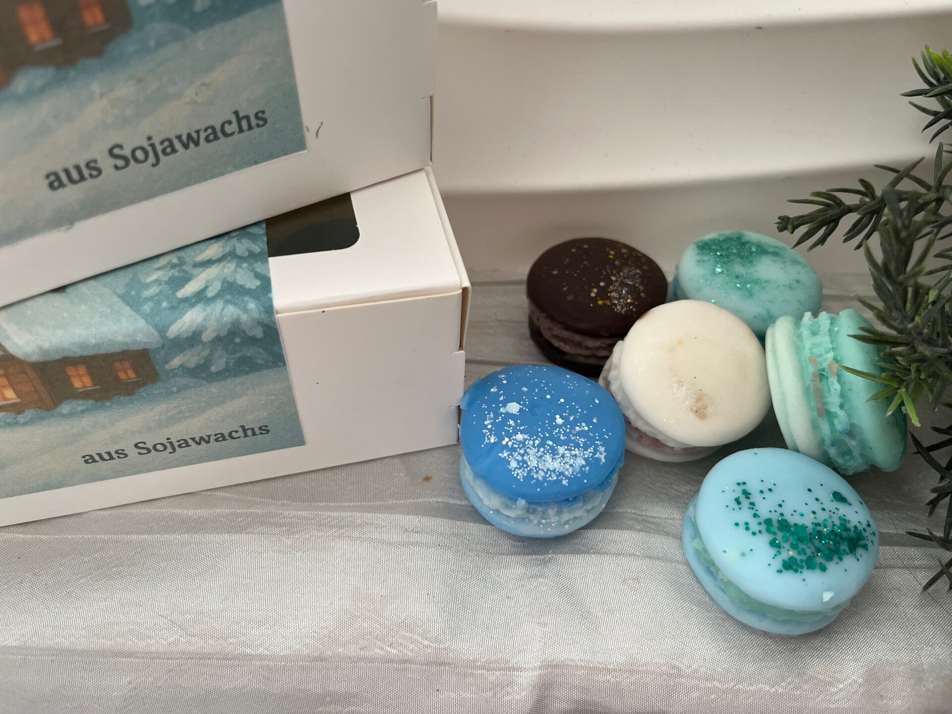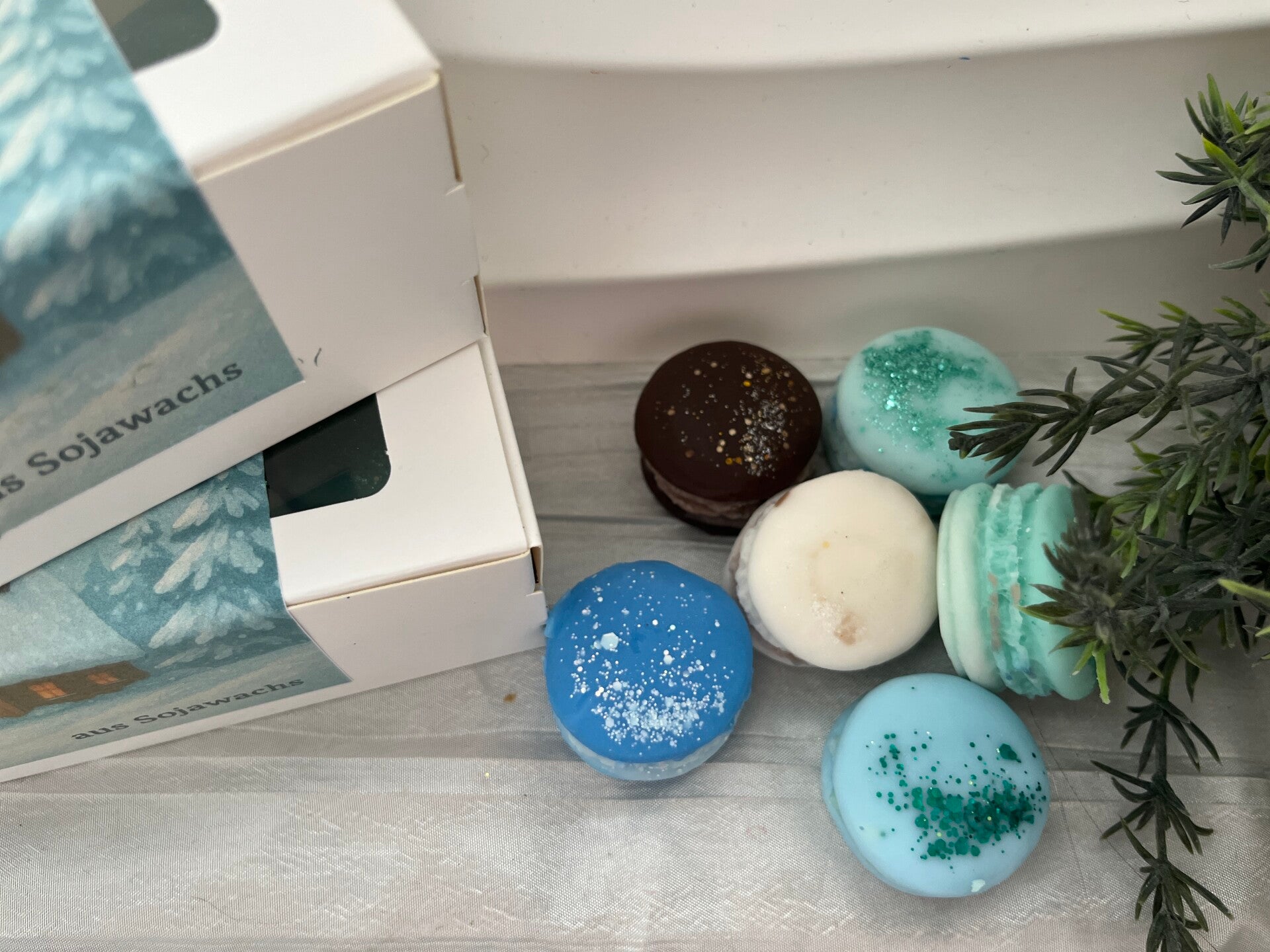 Hier findest du eine Winterbox 2 mit 6 verschiedenen Macaron Wachs Melts. 6 verschiedene Düfte mit den du dich verzaubern kannst.