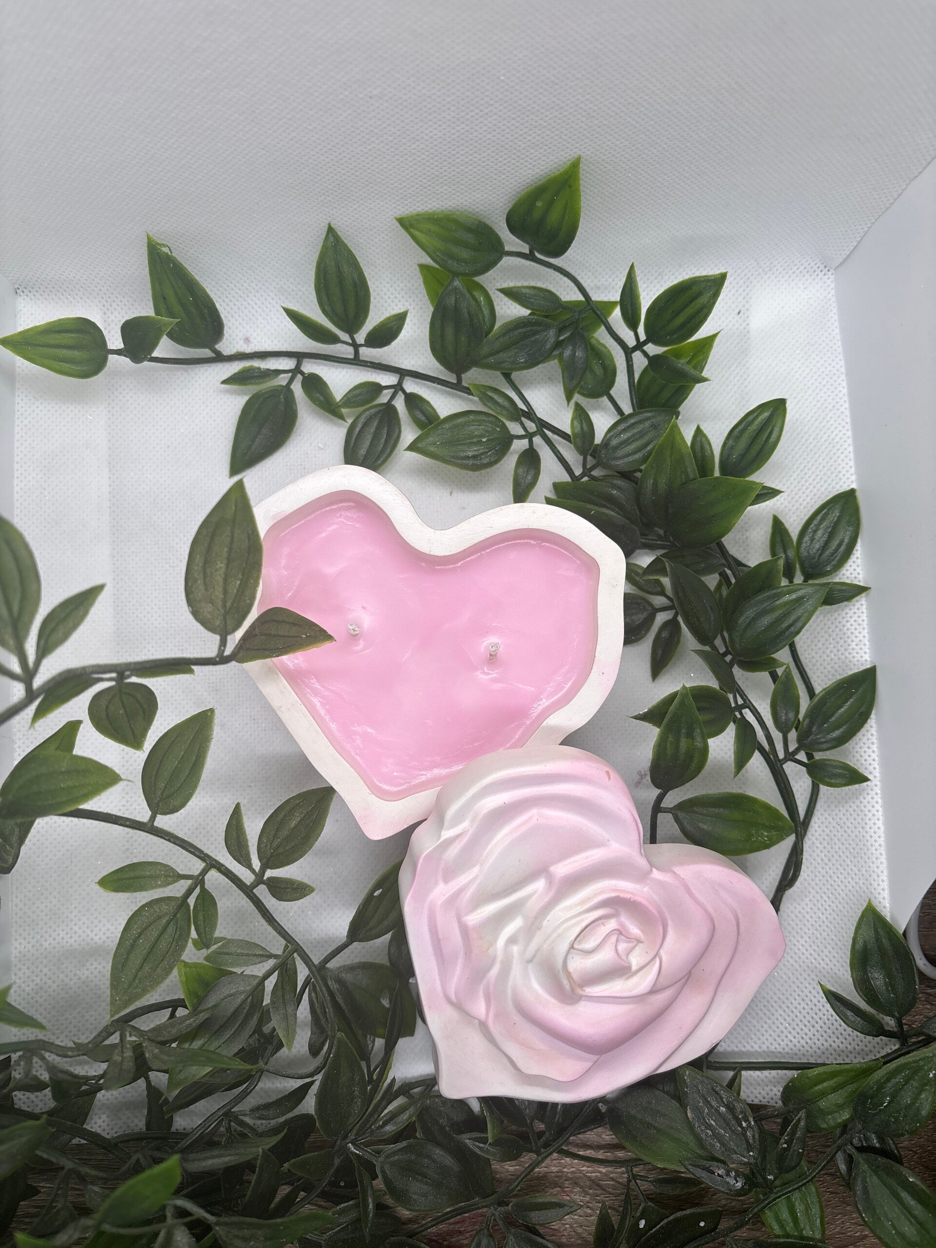 - Handgefertigte Dekokerze in Herz- & Rosenform sus Keraflot/versiegelt nit Wachs Sealer