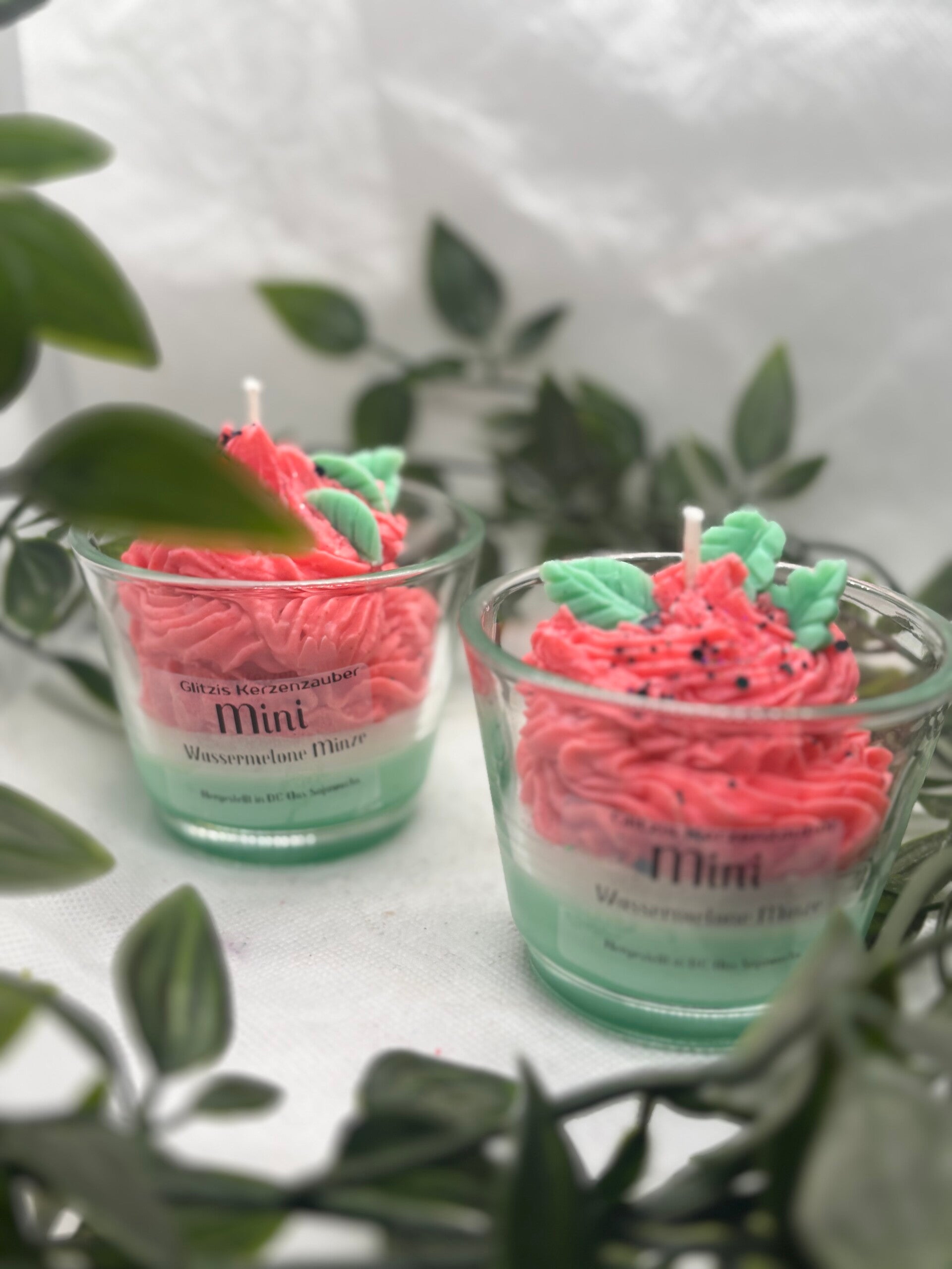 Die Mini Duftkerze „Wassermelone Minze“ vereint fruchtige Süße mit einer erfrischenden Minznote und sorgt für ein sommerlich-leichtes Dufterlebnis. Das liebevoll gestaltete Design erinnert an einen kleinen Cupcake: mit cremigem „Frosting“, dekorativen Minzblättern und feinen Streuseln als verspieltes Highlight.