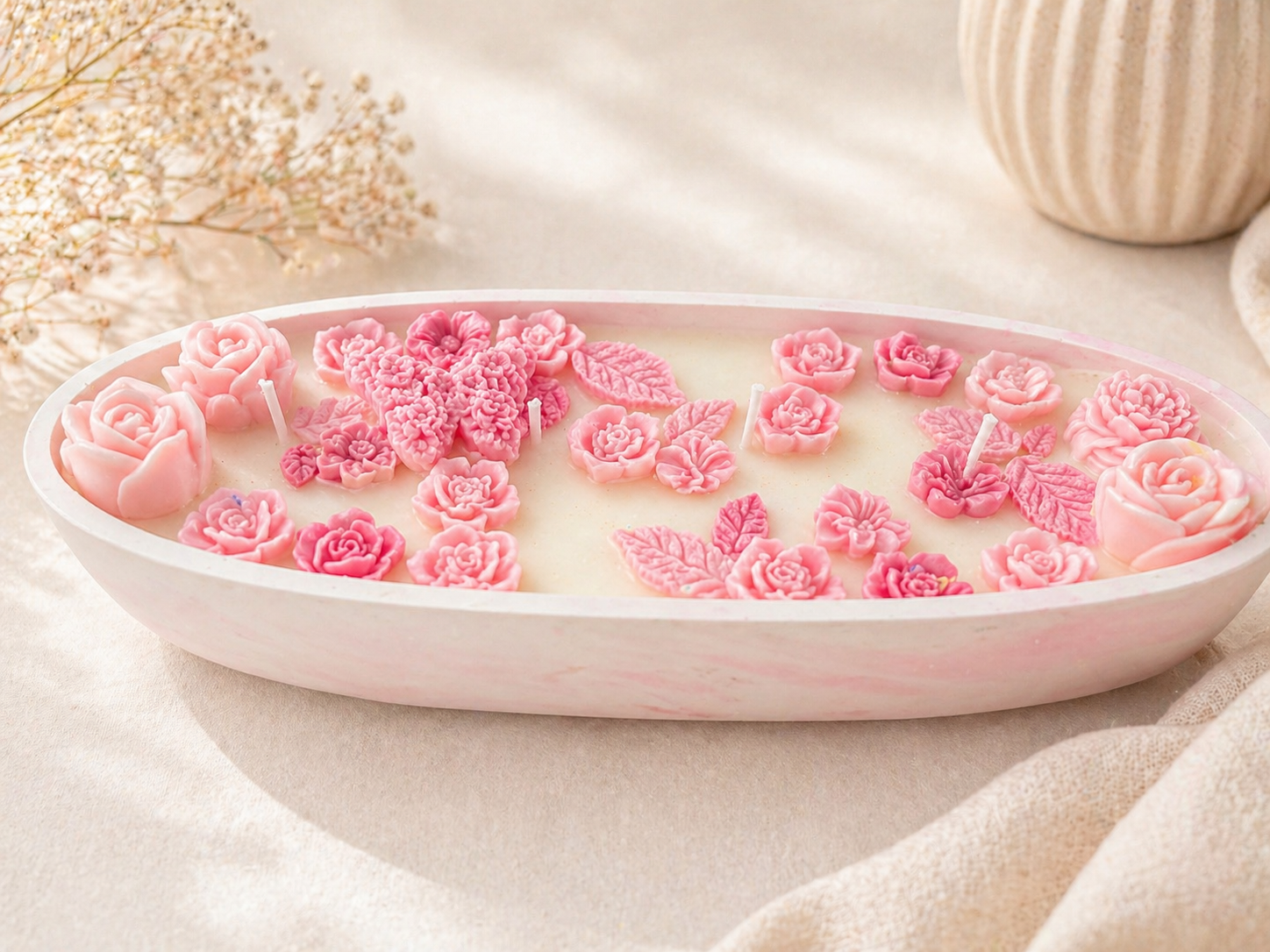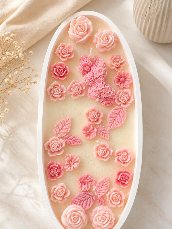 Diese liebevoll handgefertigte Duftkerze vereint zarte Eleganz mit einem traumhaft floralen Duft. Gegossen in einer stilvollen Ceraflott-Schale und verziert mit detailreichen Blütenelementen, wird sie zum echten Blickfang in jedem Zuhause.